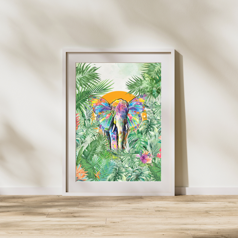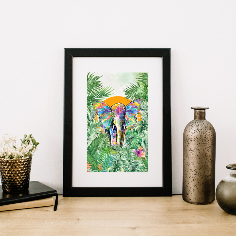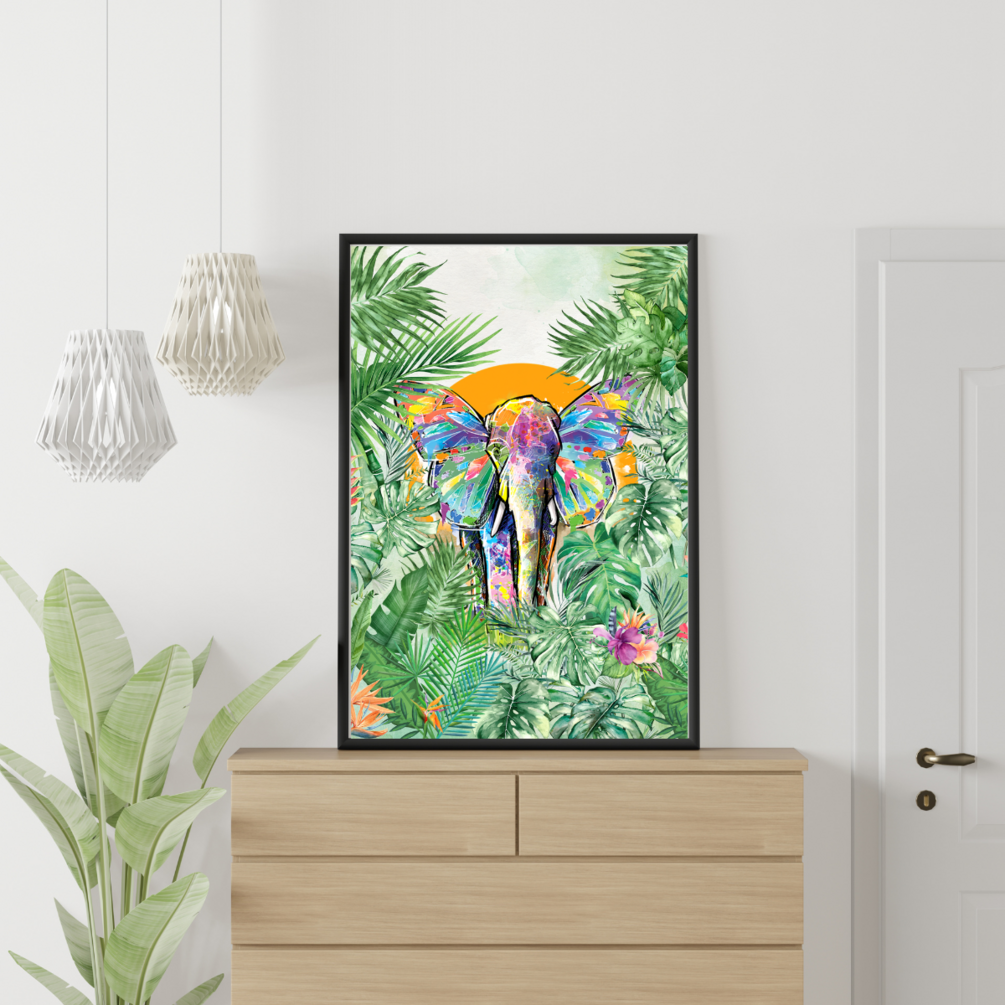 Colorful Wall Art, Elephant in Forest Nature Inspired Look to Your Place, Digital Download Only