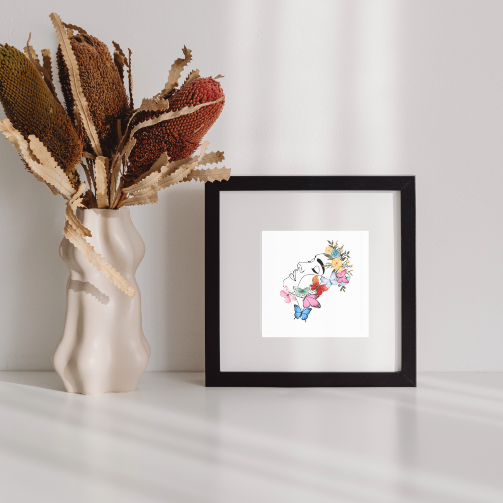 Woman Face with Colorful Butterflies Art, Line Art Female, Abstract Face by One Line Drawing with Colorful Butterflies, DigitalDownload Only