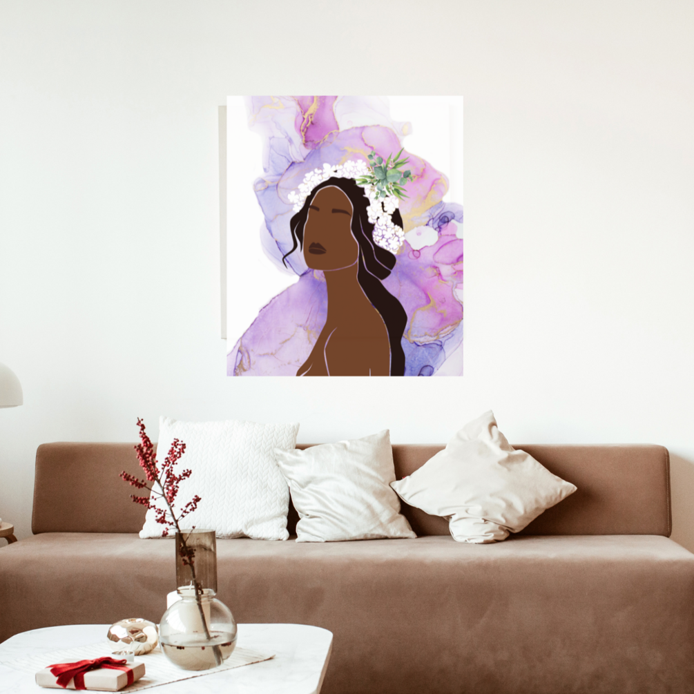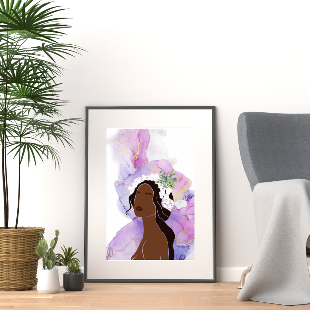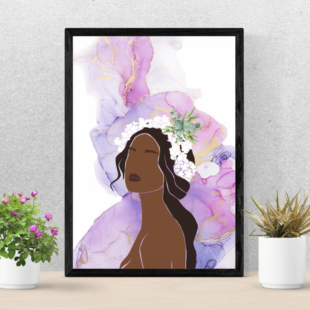 Black Woman Wall Art Printables, Dreamy Woman with Flowers in Hair, Abstract Wall Art , Digital Download Only.